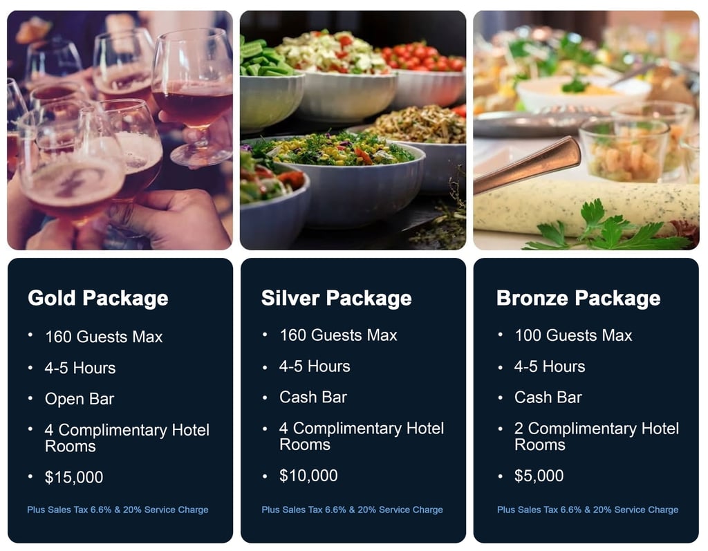 We have different packages to choose from, customize it to your desired setting. We cater to all types of events, personal or corporate.